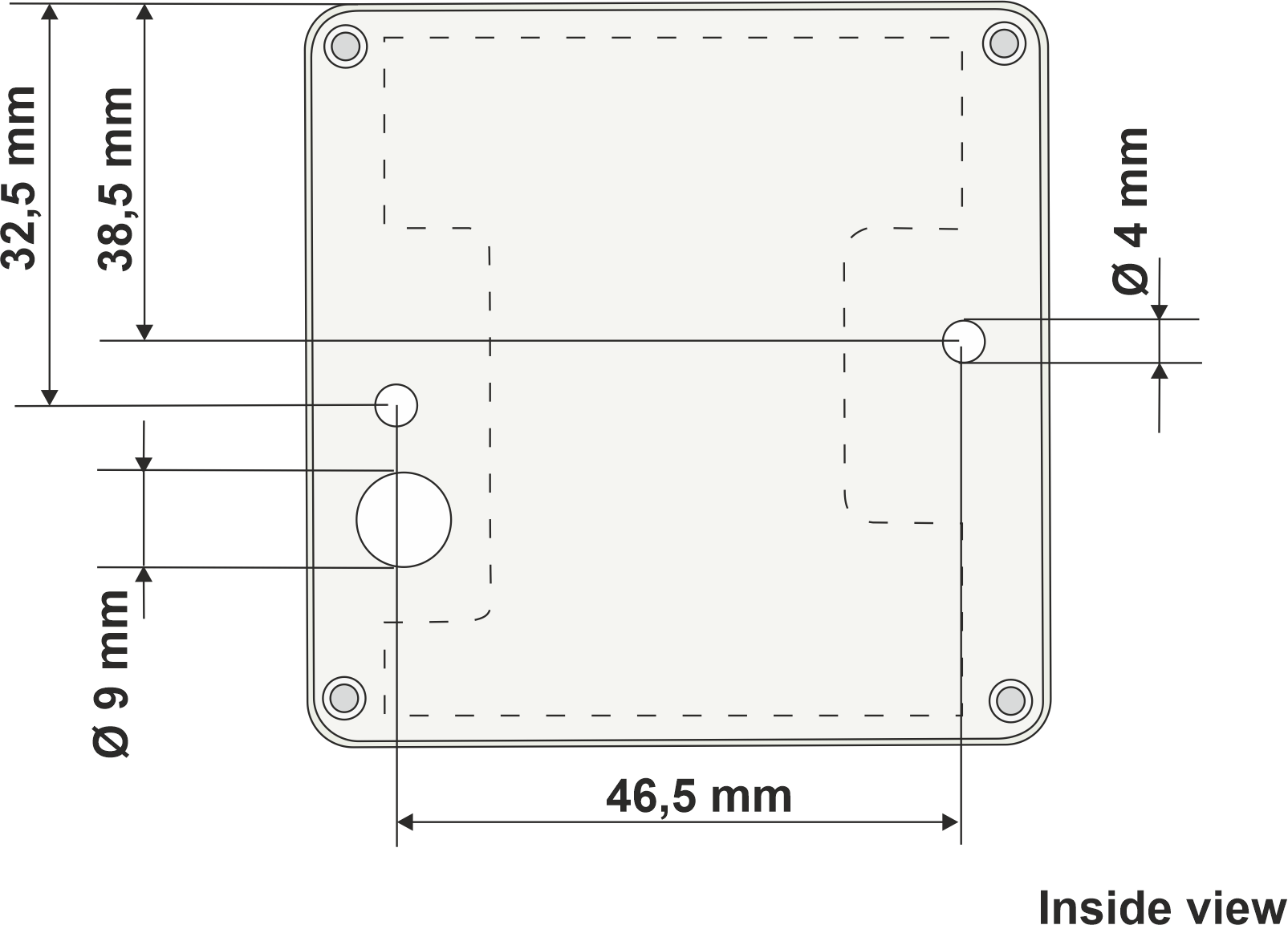 Der Kabelauslass befindet sich rückseitig, ein seitlicher Kabelauslass ist optional möglich.